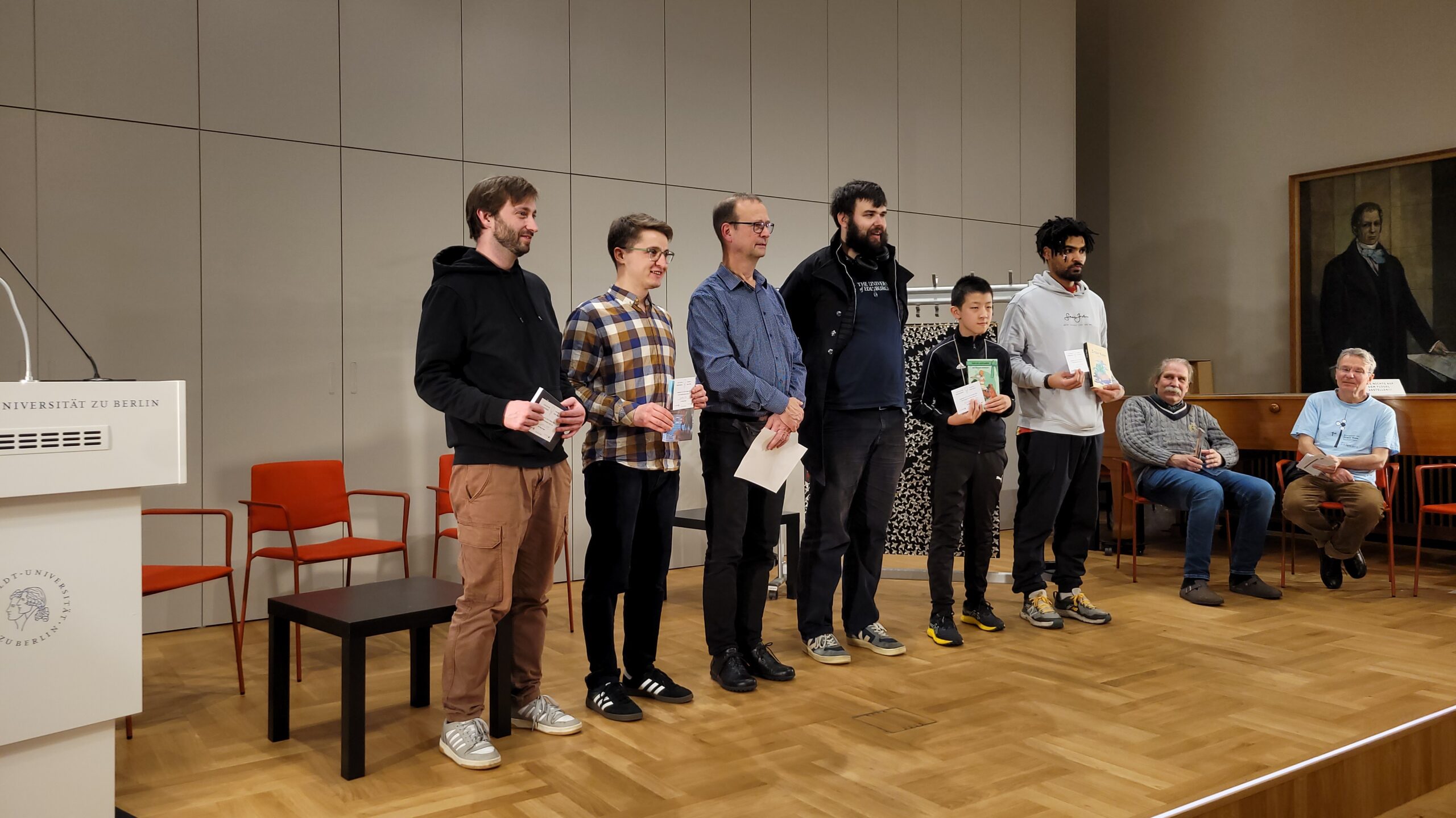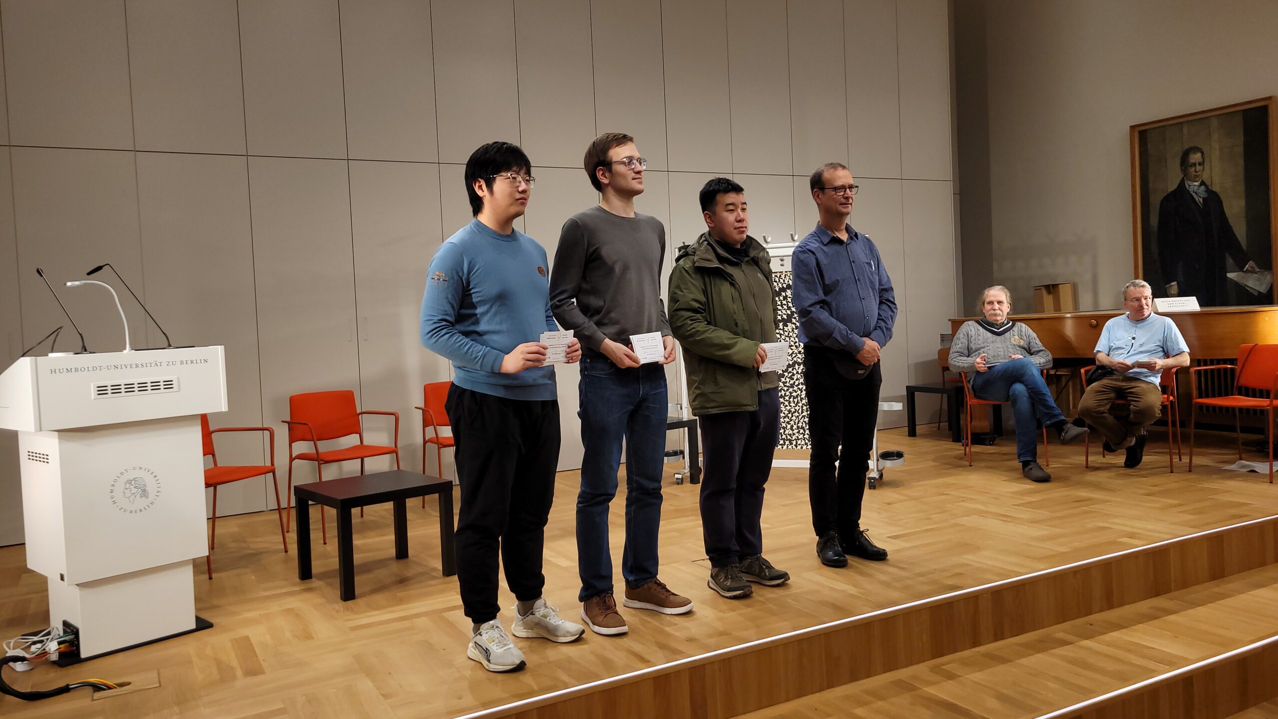 Die Japanischen Hausfrauen versorgten uns in gewohnter Qualität und alter Freundschaft. Unser besonderer Dank gilt den Mitarbeitenden der Humboldt-Universität und den Aktiven der Humboldt-Initiative, namentlich Dr. Bernd Schilfert. Valerii Krushelnytskyi, 7D gewann vor Yixin Yuan, 5D und Xinghong Chen, 5D. Beste Teilnehmerin wurde Akira Maekawa, 5D, bester Student Kaku Maekawa, 6D.